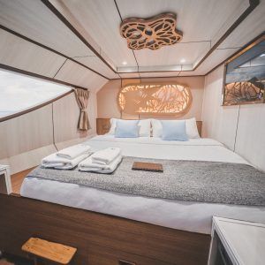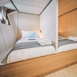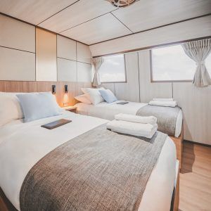 Tällä aluksella mukavuus on huippuluokkaa: jokaisessa hytissä on oma kylpyhuone ja yksilöllisesti säädettävä ilmastointi. Hyttien ulkopuolella voit rentoutua aurinkokannella ja nauttia elokuvista salongin massiivisesta 85-tuumaisesta mediajärjestelmästä.